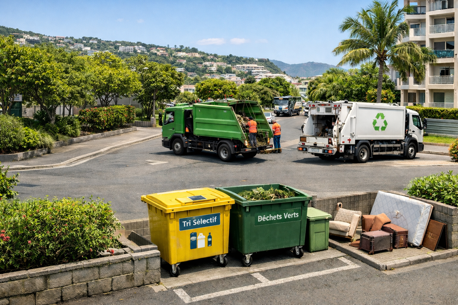 - Plan encombrants et déchets verts : calendrier simple, communication répétée, points de dépôt.